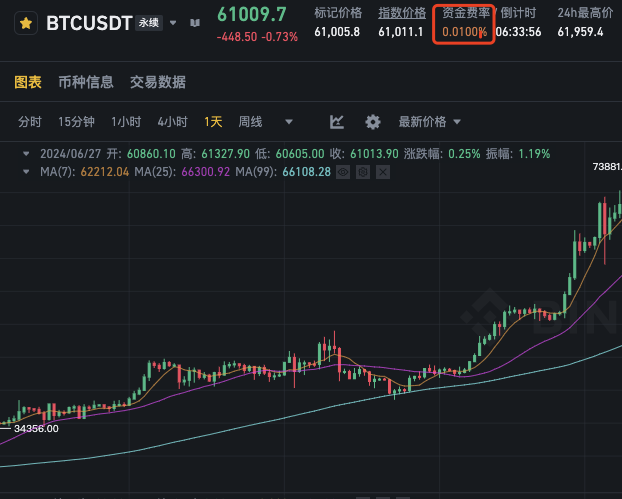 如下图所示,Binance交易页实时计算的下一次资金费率: