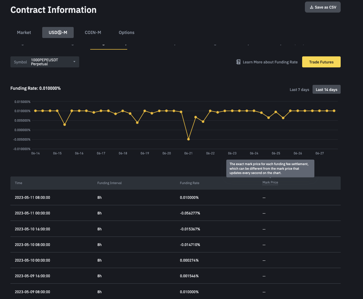 以Binance为例,它提供了一个可以查看和下载全量资金费率历史数据的页面,访问 Funding Rate History。