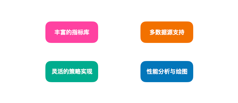 Backtrader 有着完整的基础设施,支持编写可重用组件,如策略、指标和分析器,支持多品种多周期多策略的回测。