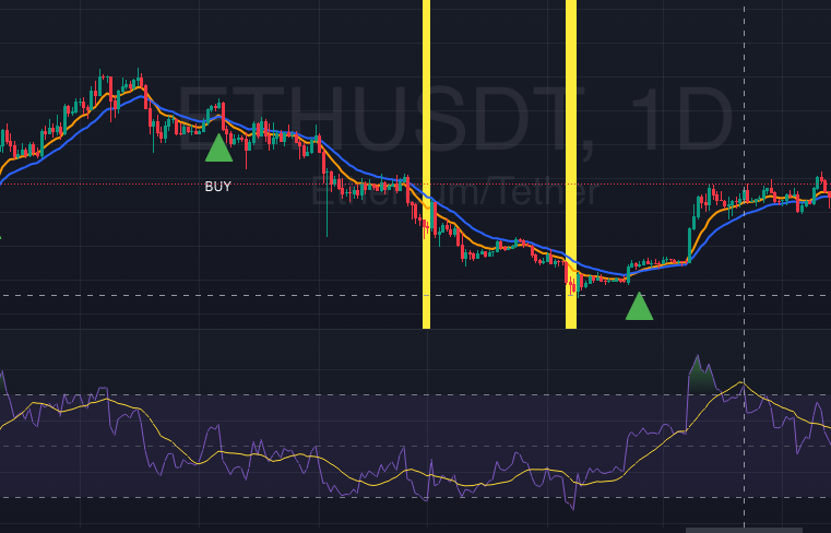 定投时机的定义是,如果短期 10 EMA 位于长期 20 EMA 超过 20 个时间周期后出现金叉,进行定投。