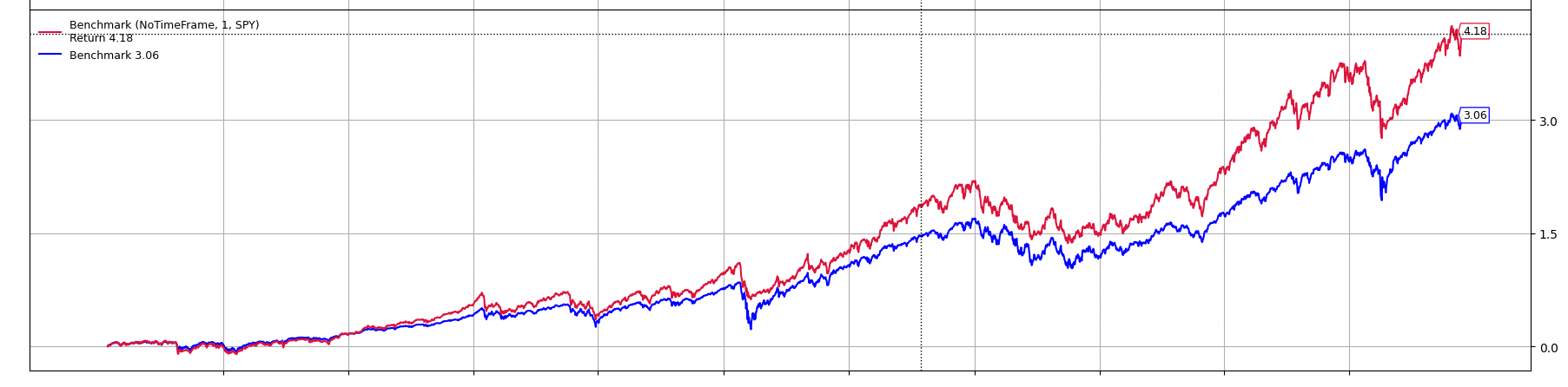 我用了 SPY 这个品种回测了这个目标波动率的策略,策略的完整回测代码,请访问:voltarget.py。